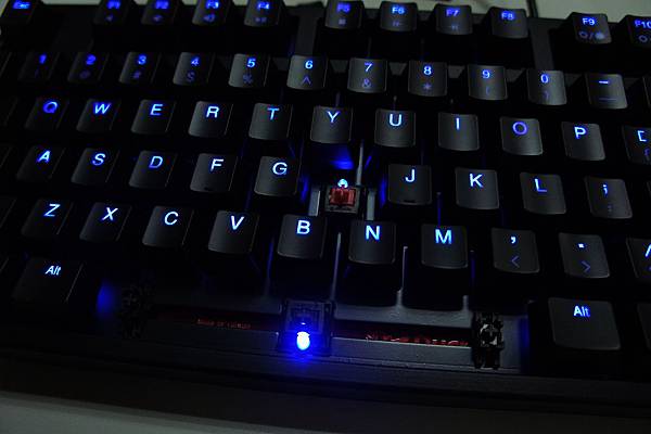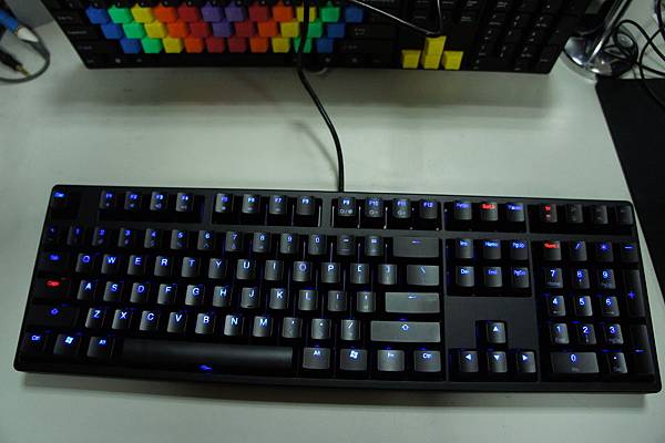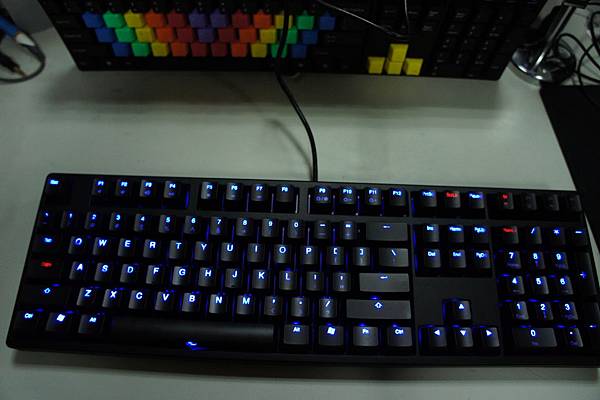 接上後 功能鍵 顯示紅燈 (背景是 彩虹pbt同刻鍵帽 filco 茶軸)
